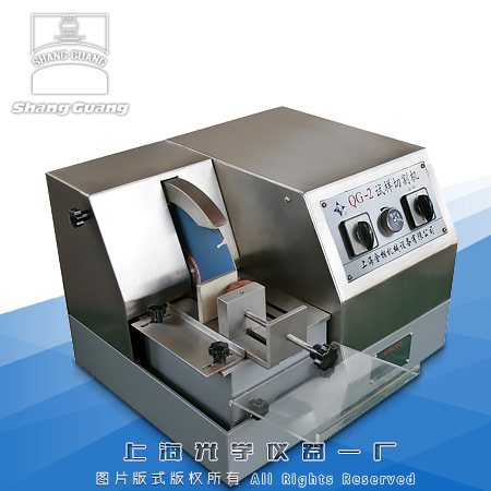 在金相試樣制備過程中,試樣材料的切割是試樣制備的首道重要工序。QG-2型切割機適用于一般巖相材料。為保證能在絕對安全狀態下切取試樣,本機采用全封閉雙罩殼結構和快速夾緊裝置,并有冷卻水箱,可使用配制好的冷卻液作循環使用。為延長該設備的使用壽命和操作維護保養等方便,該機的罩殼、砂輪軸套、鉗口和工作臺面等主要零部件均采用不銹鋼材料制成,是切割試樣的最佳設備。
