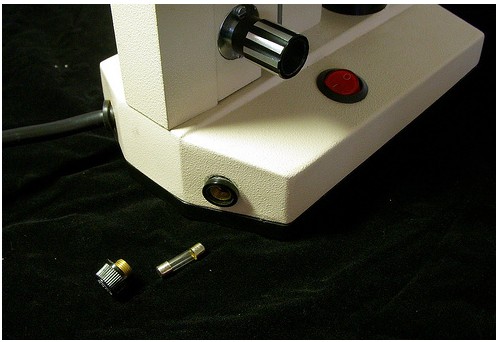 燈不亮的一個原因其實是保險絲的問題。保險絲安裝的地方,通常是在顯微鏡屁股。有些燈不亮的原因是學生把保險絲拿走了!?燈當然就不會亮了。這種情況當然只要買保險絲裝上就可以了。