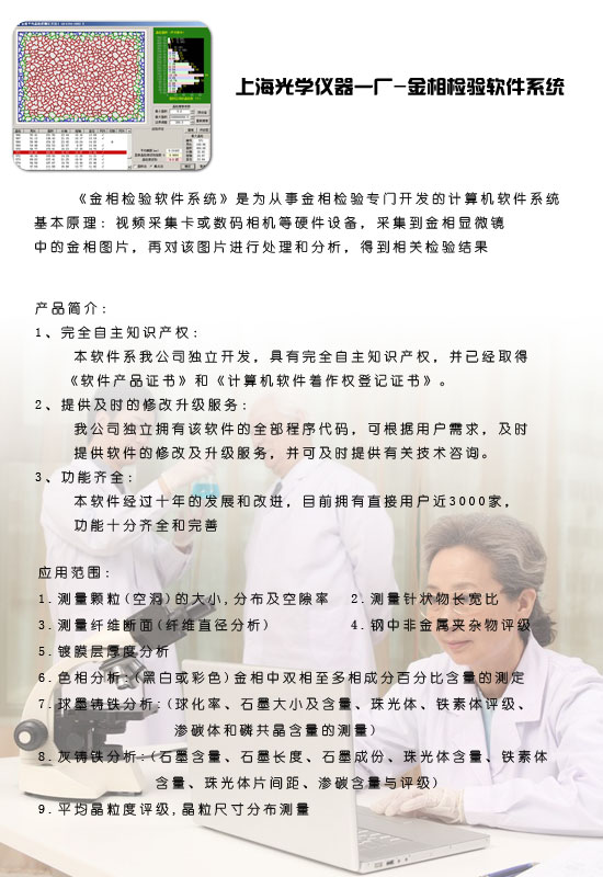 上海光學儀器一廠:金相顯微鏡測量軟件:操作簡單分析快捷,并具有高精準度,科研人員能夠在短時間內量化金相材料的特性,